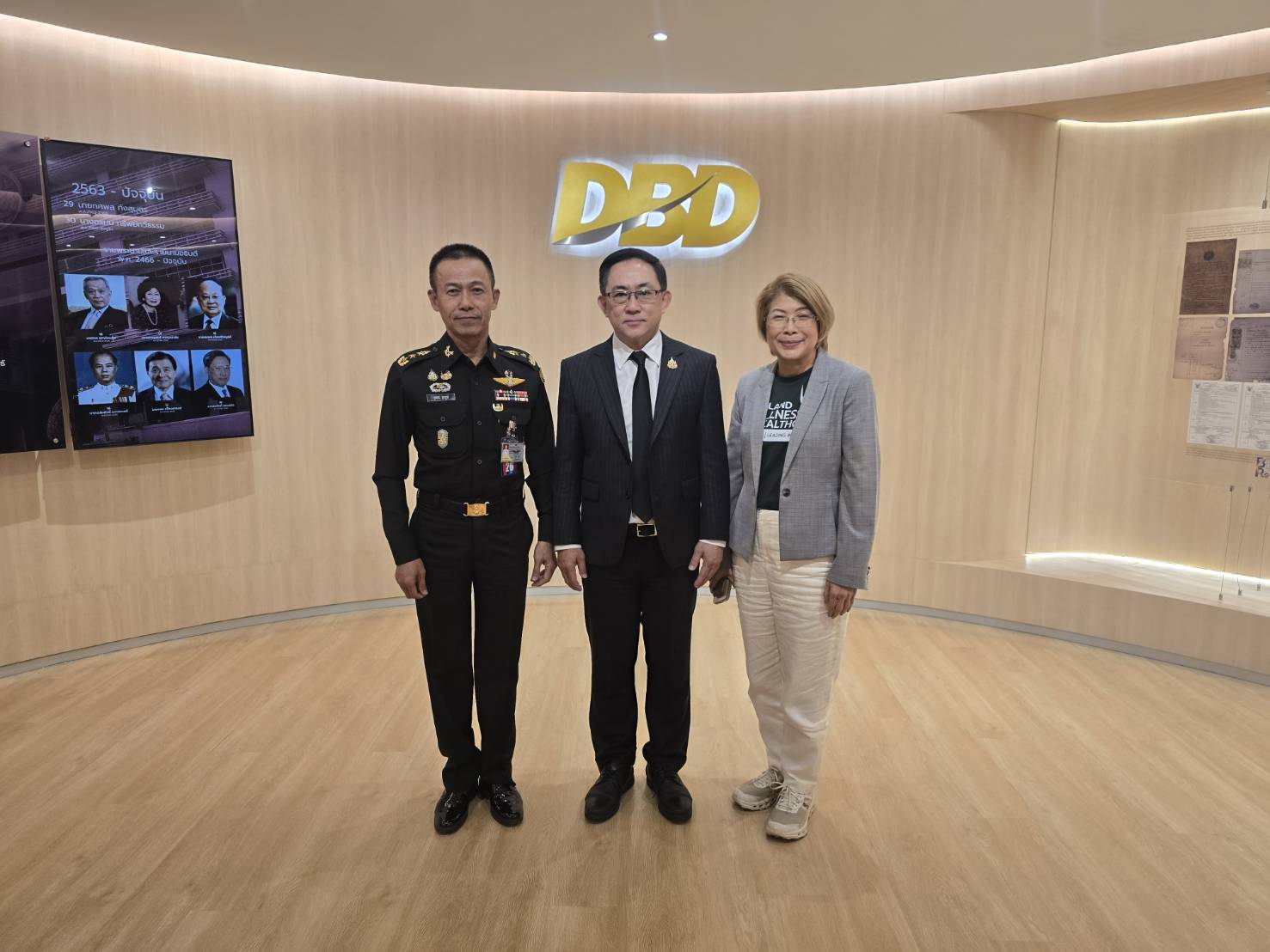 คุณณรินณ์ทิพ วิริยะบัณฑิตกุล ประธานเจ้าหน้าที่บริหาร บริษัท พีเอ็มจี คอร์ปอเรชั่น จำกัด ร่วมถ่ายรูปกับ นายพูนพงษ์ นัยนาภากรณ์ อธิบดีกรมพัฒนาธุรกิจการค้า และ พลโท ยุทธกร สุภาสูรย์ รองผู้อํานวยการใหญ่สายงานบริหาร สถานีวิทยุโทรทัศน์กองทัพบก พร้อมกับผู้บริหารกรมพัฒนาธุรกิจการค้า ร่วมพูดคุยการทำงานร่วมกัน