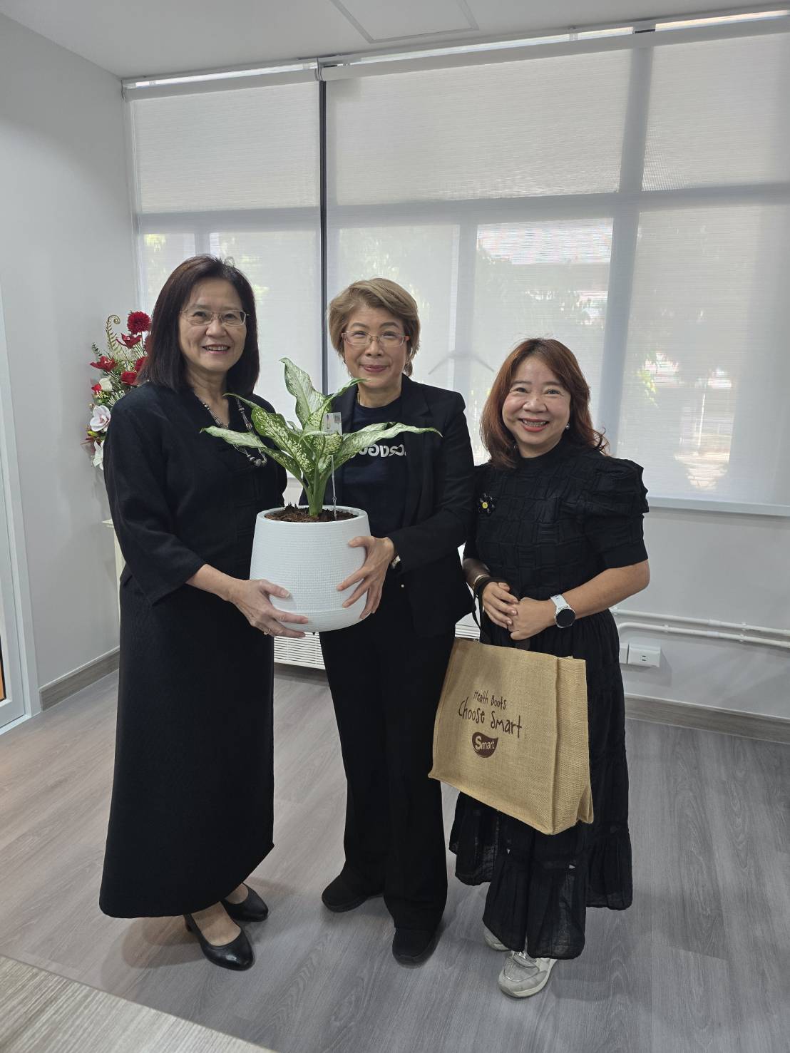 คุณณรินณ์ทิพ วิริยะบัณฑิตกุล ประธานเจ้าหน้าที่บริหาร และคุณวิมลณ์เกศ สุวพัฒน์ธุนากร ผู้อำนวยการฝ่าย Mice & More บริษัท พีเอ็มจี คอร์ปอเรชั่น จำกัด เข้าสวัสดีปีใหม่ และยินดีในโอกาสรับตำแหน่งใหม่ของ นางอัญชลี สุวจิตตานนท์ อธิบดีกรมหม่อนไหมรักษาราชการแทนอธิบดีกรมส่งเสริมการเกษตร